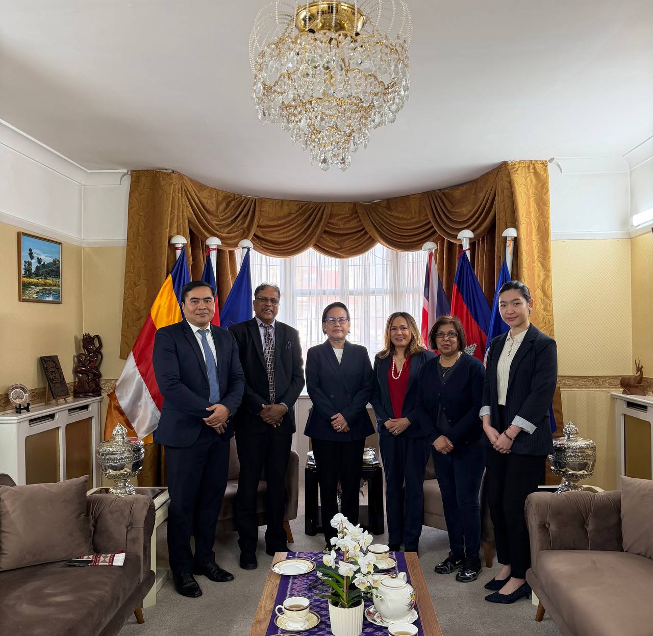 On the morning of March 23, 2026, Her Excellency Tuot Panha, Ambassador Extraordinary and Plenipotentiary of the Kingdom of Cambodia to the United Kingdom, accompanied by Mr. Chhuon Naroen, Counselor, and Ms. Heng Chhunleang, First Secretary, met with Datuk (Sir) SK Lingam, President of the ASEAN-UK Business Forum (AUBF), and his colleagues at the Royal Embassy of Cambodia in London.