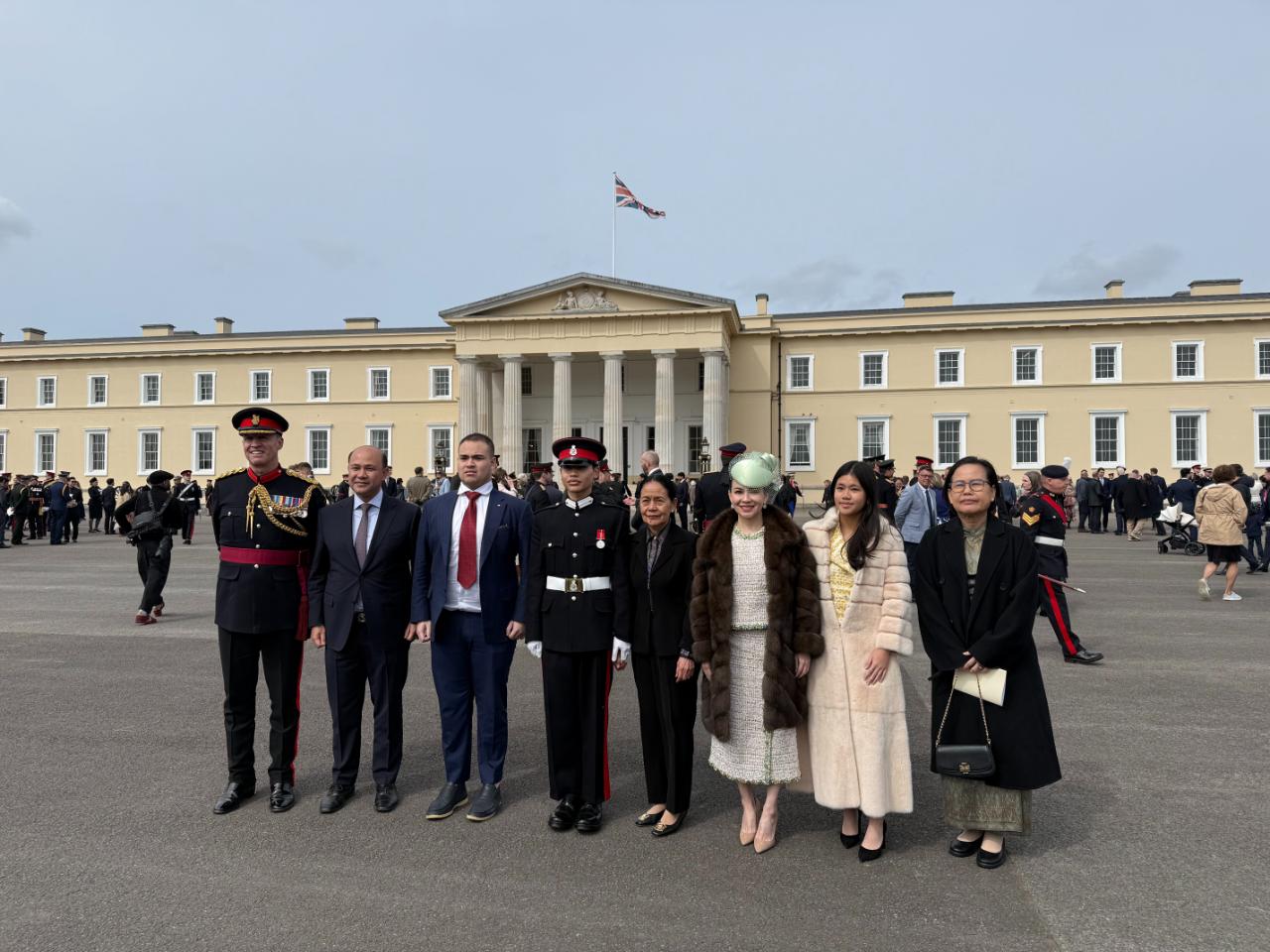 On 10 April 2026, Her Excellency Tuot Panha, Ambassador Extraordinary and Plenipotentiary of the Kingdom of Cambodia to the United Kingdom, accompanied by Ms. Heng Chhun Leang, First Secretary, attended the Sovereign’s Parade at the Royal Military Academy Sandhurst to congratulate Officer Cadet Hun Chan Panhaboth on his successful graduation.