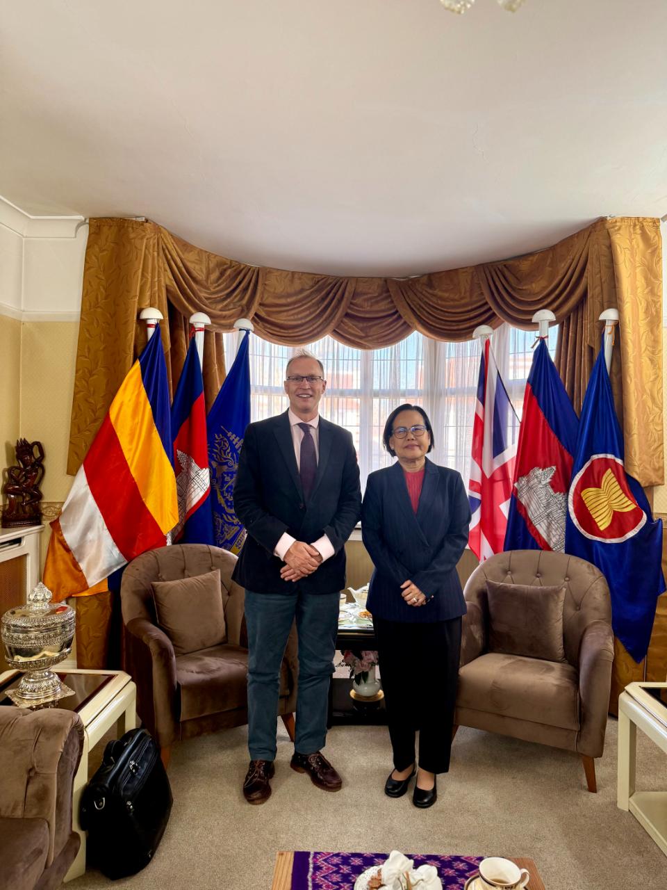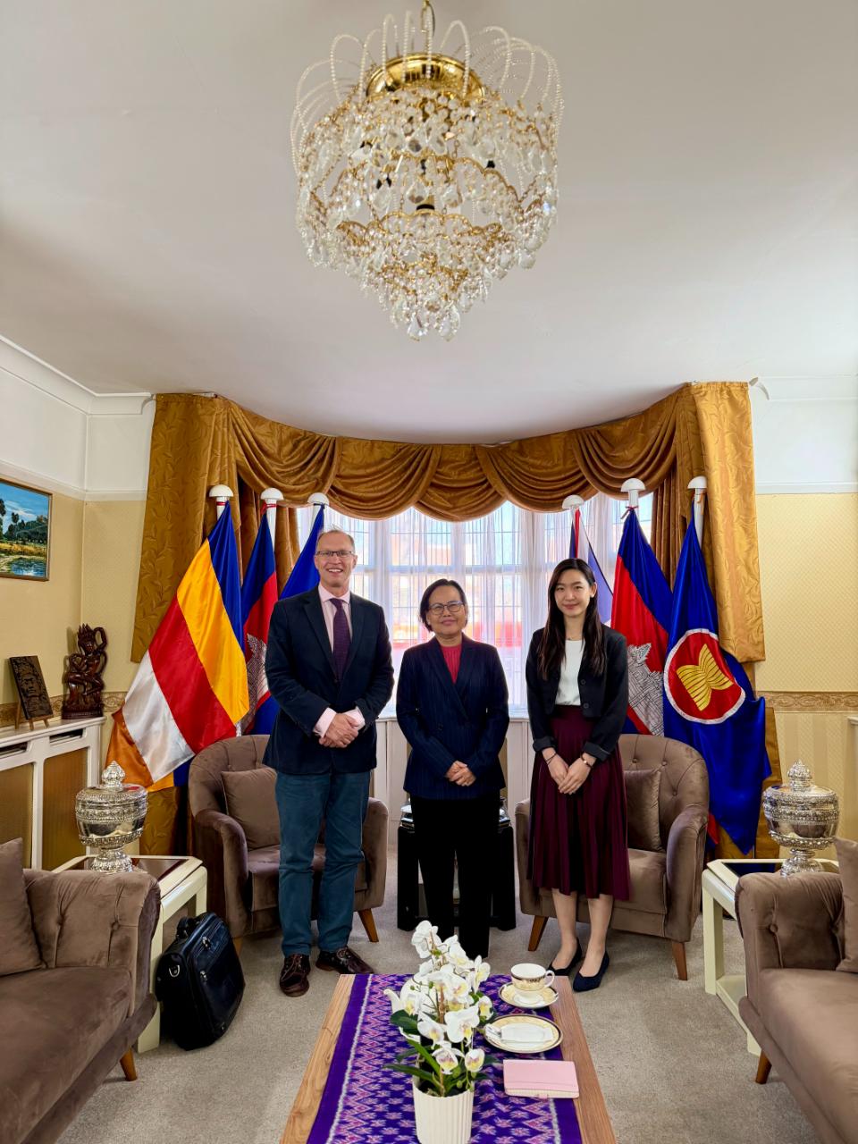 On 7 April 2026, at the Embassy of Cambodia in London, Her Excellency Ms. Tuot Panha, Ambassador Extraordinary and Plenipotentiary of the Kingdom of Cambodia to the United Kingdom, accompanied by Ms. Heng Chhun Leang, First Secretary, received Colonel Julian Smith, United Kingdom Defence Attaché to Cambodia, resident in Hanoi, Viet Nam.