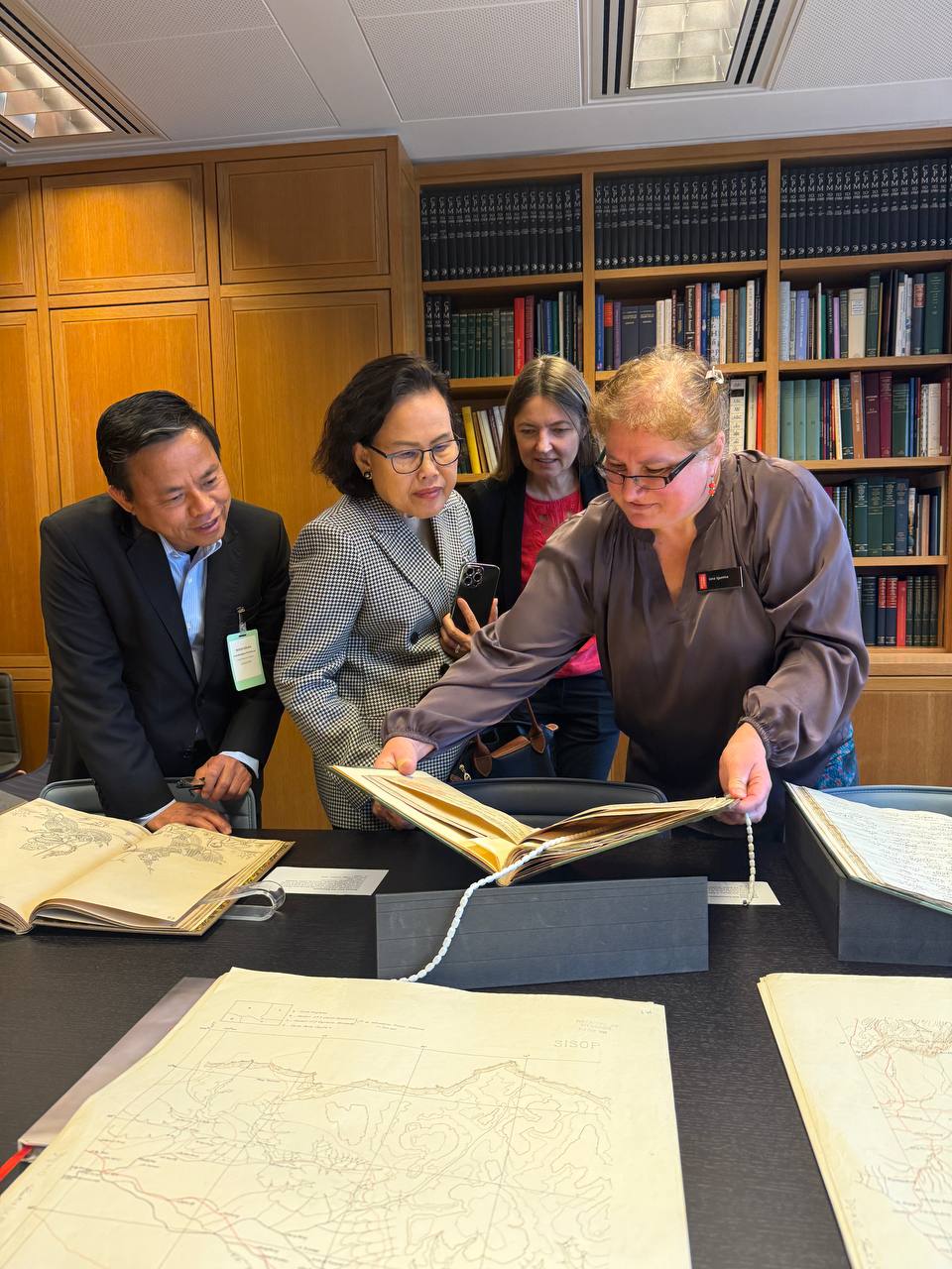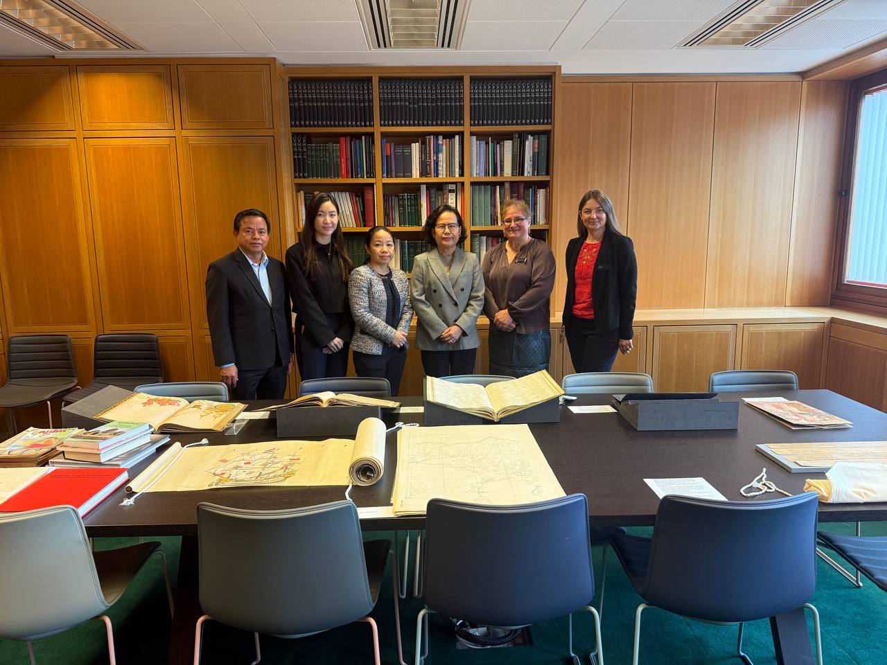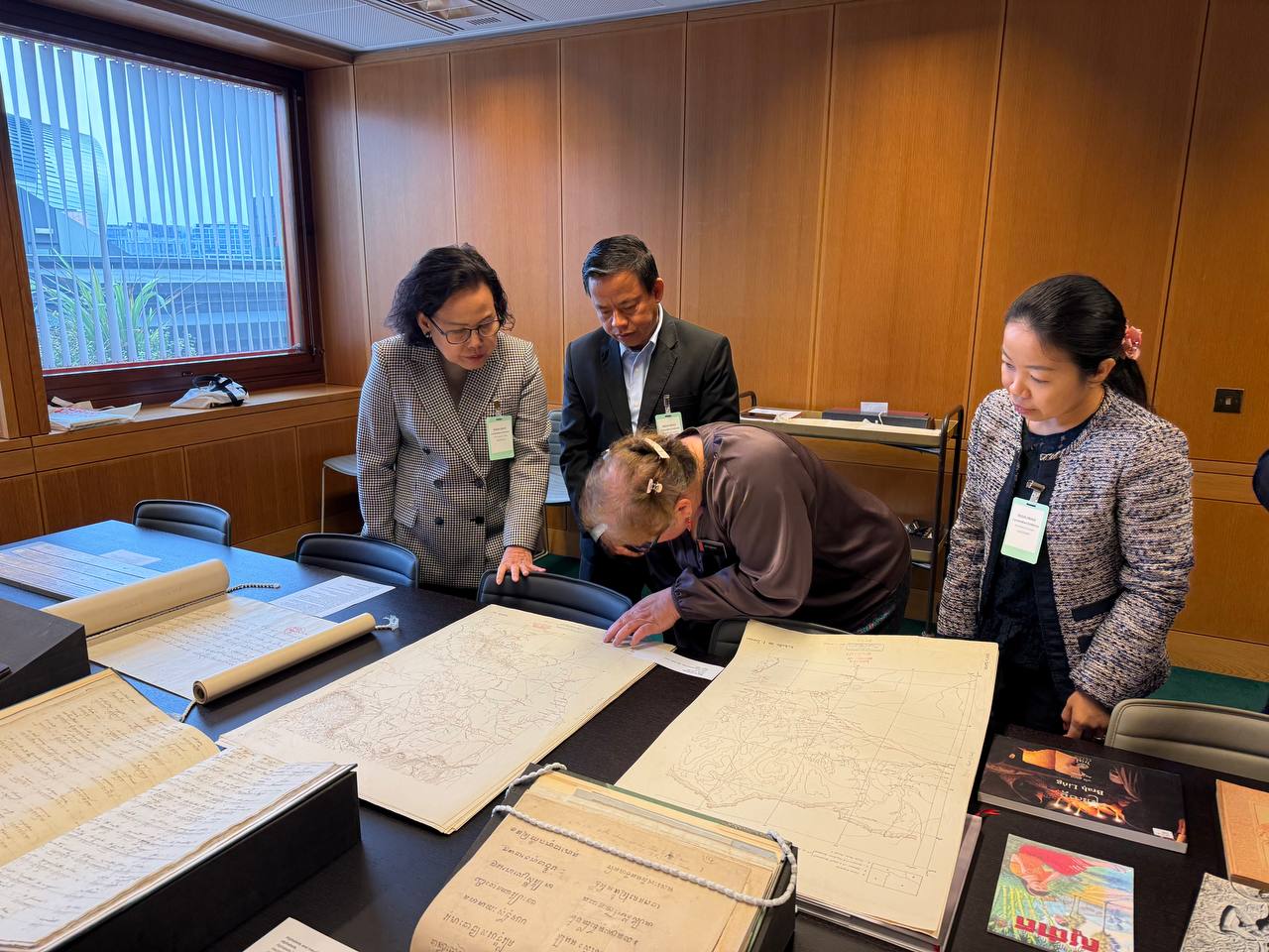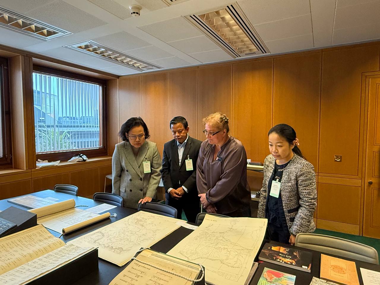 The visit was graciously hosted by Ms. Eleanor Cooper, International Engagement Manager, and Ms. Jana Igunma, Curator for the Cambodian, Lao and Thai Collections. During the visit, the Embassy delegation was honoured to view a number of treasured Cambodian literary and historical works, including ancient manuscripts, poems, as well as a historical map of Cambodia.