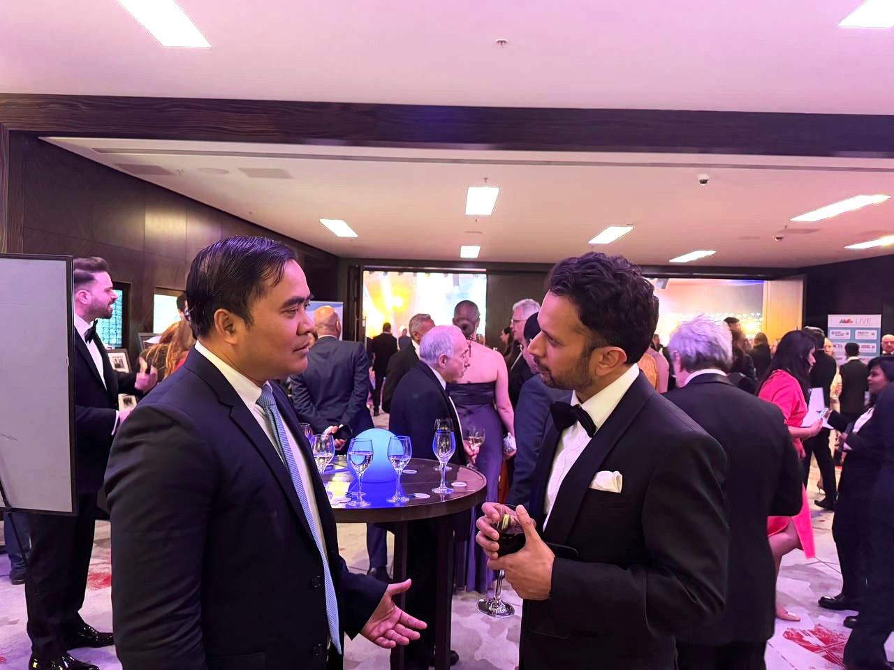 On 21 November 2025, Mr. Chhuon Naroeun, Counsellor, together with Ms. Heng Chhun Leang, First Secretary of the Royal Embassy of Cambodia in the United Kingdom, attended the Asian Business Awards. The event provided an opportunity to connect with business leaders and to celebrate the contributions of the Asian business community to economic growth and innovation in the UK.