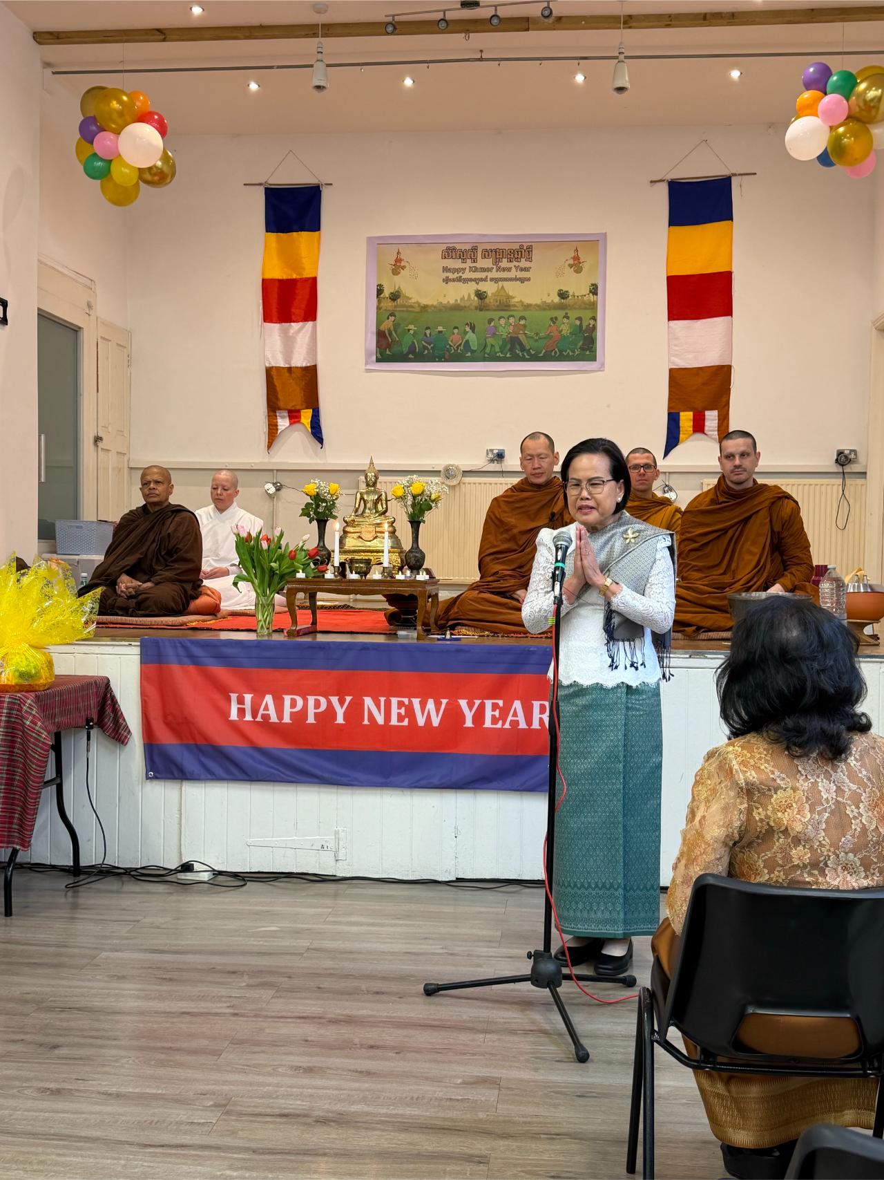 On the same occasion, Her Excellency Ambassador Tuot Panha conveyed warm greetings from Cambodia’s leadership, particularly Samdech Techo Hun Sen, Acting Head of State; Samdech Thipadei Hun Manet, Prime Minister of Cambodia; and His Excellency Prak Sokhonn, Deputy Prime Minister and Minister of Foreign Affairs and International Cooperation. She emphasized their ongoing attention for the well-being of Cambodian citizens both at home and abroad, including those in the United Kingdom. She also extended New Year wishes to all Cambodians, students, and residents in the UK, wishing them the four Buddhist blessings of longevity, prosperity, happiness, and strength.
